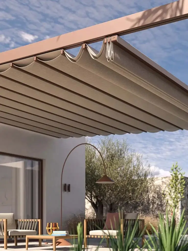 كما أن هذه المظلات تضيف عنصر راحة ومرونة للمستخدم، إذ يمكنك التحكم بفتحها أو غلقها حسب الحاجة — سواء في فترات الصيف الحارّ أو في الأيام المعتدلة — ما يجعلها مناسبة للمنازل، الفلل، والمواقف التي تحتاج إلى حلول ظليّة متنوّعة.